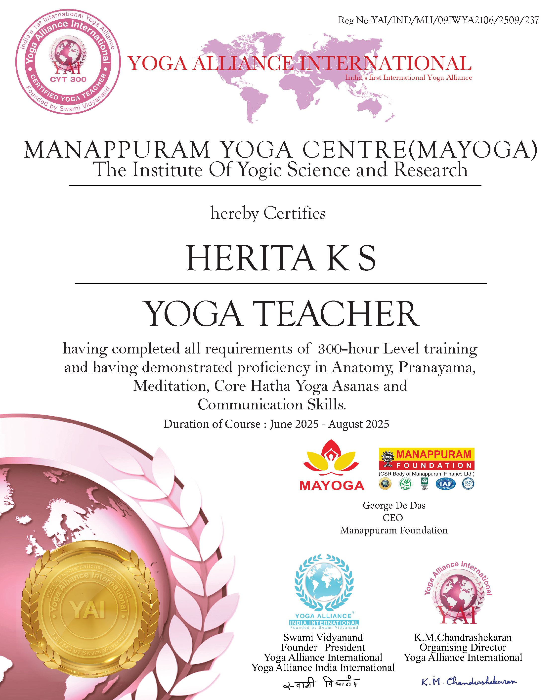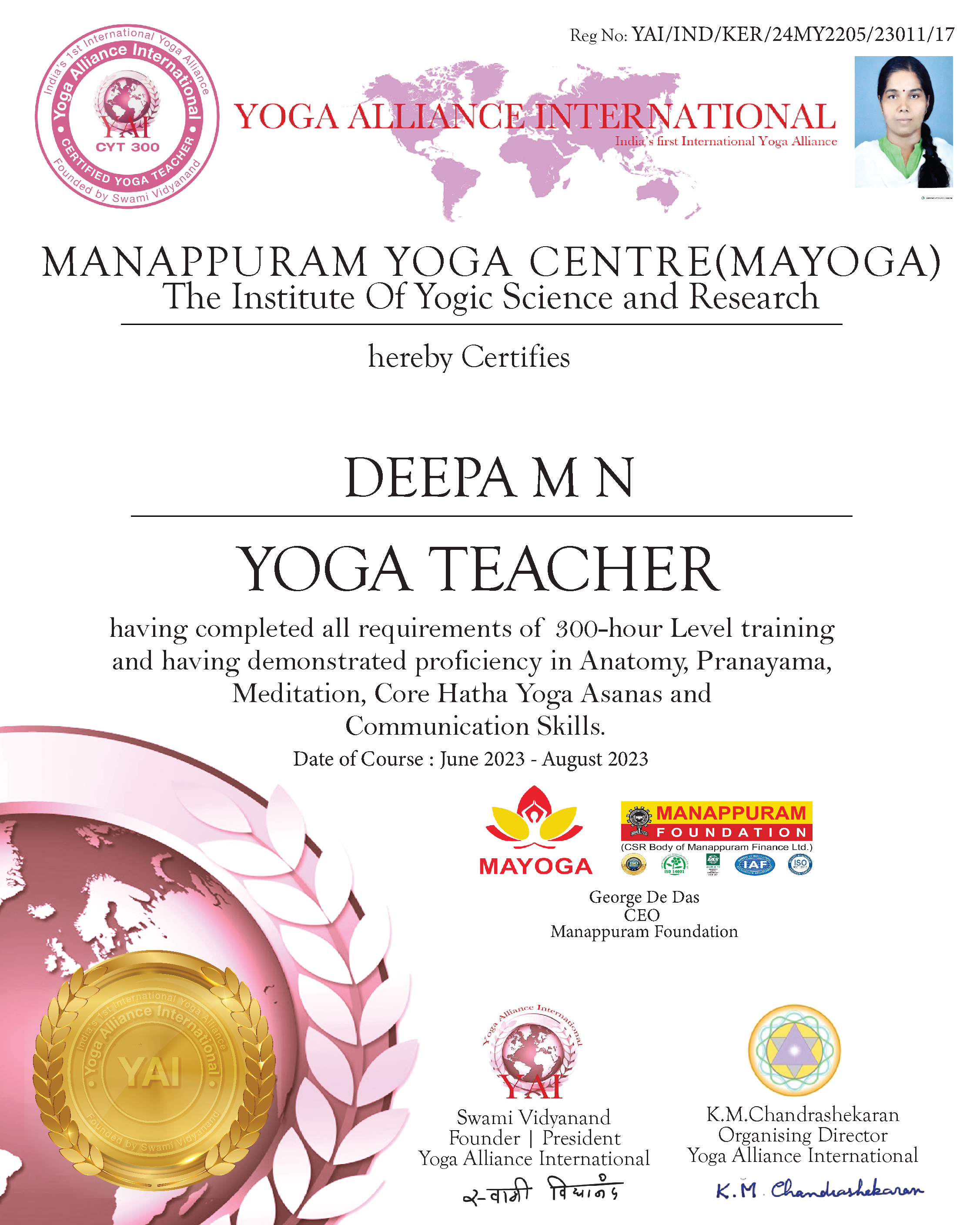 Yoga Teachers in MANAPPURAM YOGA CENTRE (MAYOGA)