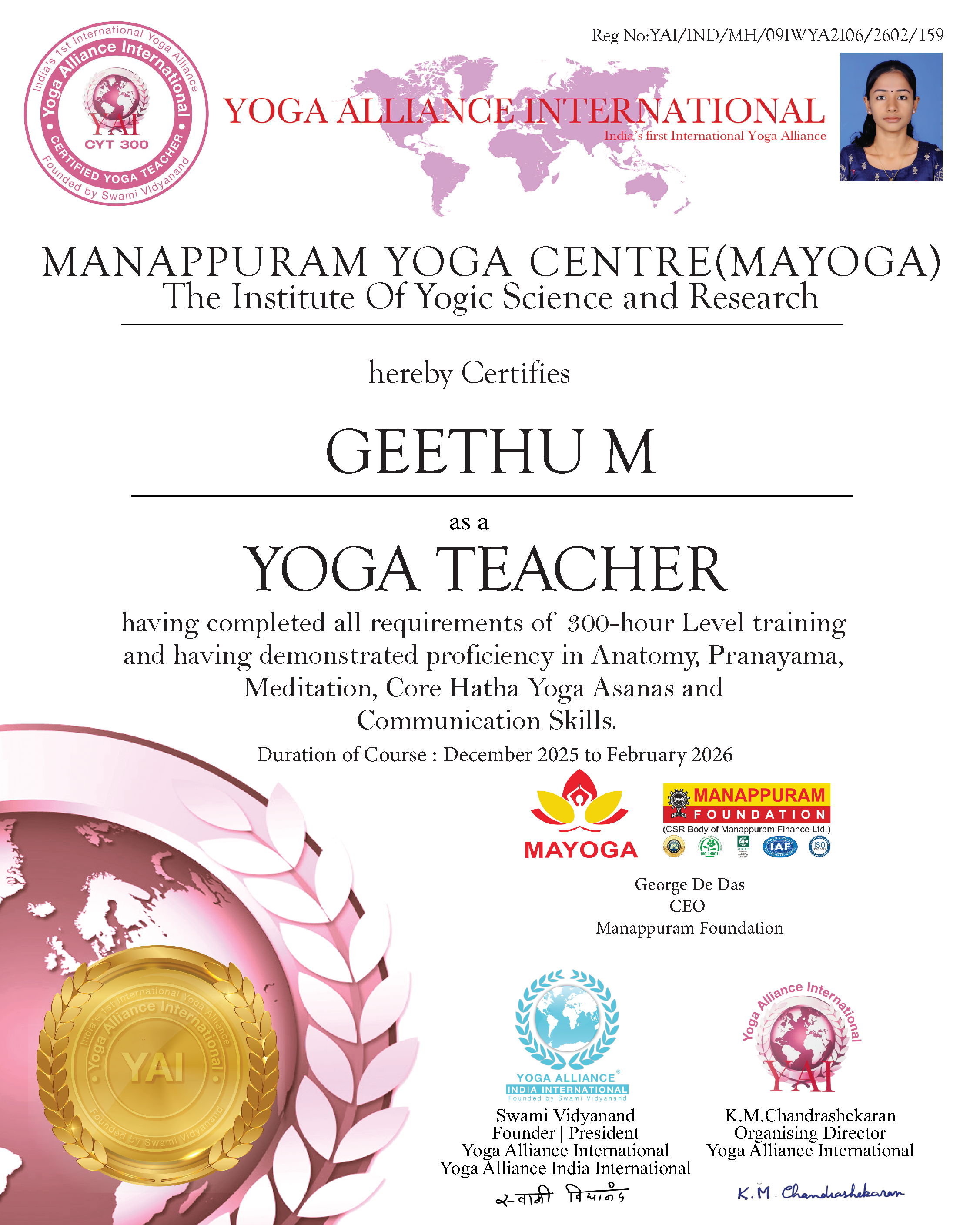 Yoga Teachers in MANAPPURAM YOGA CENTRE (MAYOGA)