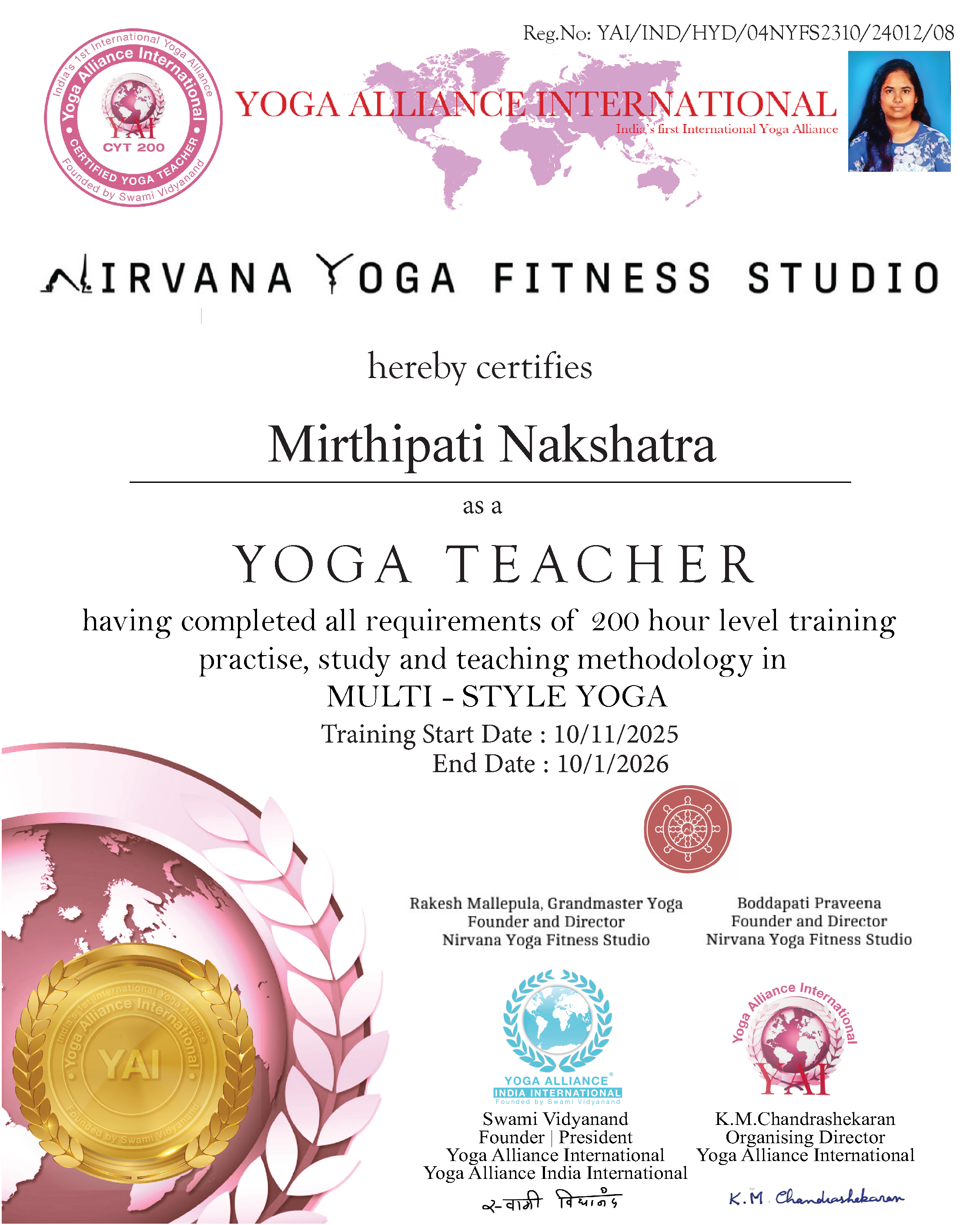 Sriya I. Reddi 200hr